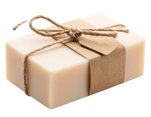 Artisanal Soap Elegance: An artisanal soap bar rests elegantly on a marble holder, wrapped with rustic twine, showcasing natural elements and a touch of refinement.