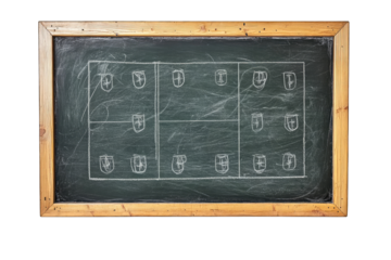 Soccer ball action on chalkboard field top view isolated on transparent background, png