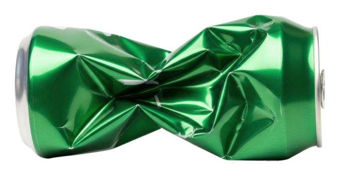 crumpled empty blank soda can isolated on white, transparent background. png image