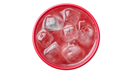Refreshing cold drink in a red cup filled with ice and soda on a warm afternoon on a transparent background