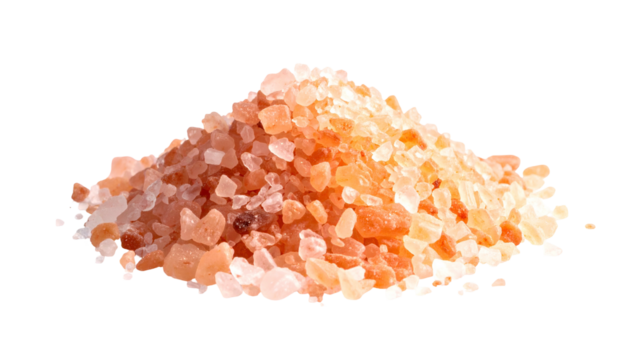 A pile of white sea salt isolated on transparent background, a natural seasoning for culinary use