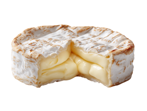 Creamy Soft Cheese with White Rind on Transparent Background, PNG