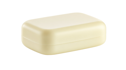 A rectangular bar of soap in a matching, slightly recessed, plastic container