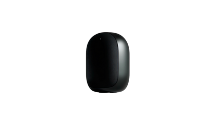 Sleek, dark gray/black device with rounded edges, softly lit on a dark backdrop