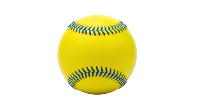 Bright Yellow Softball with Visible Red Stitching, Top-Down Flat Lay, isolated on a transparent background
