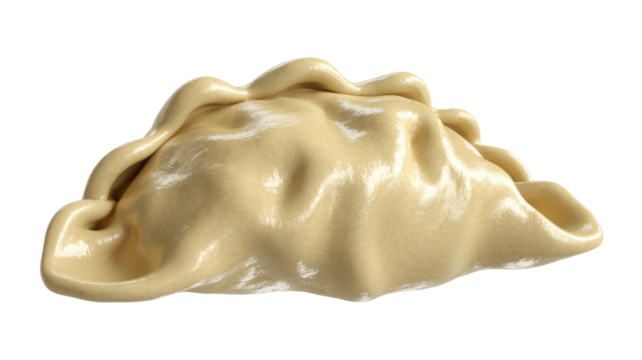 A perfectly formed, single raw or steamed dumpling, possibly a momo or pelmeni, with delicate pleats and a smooth, pale yellow surface. background removed