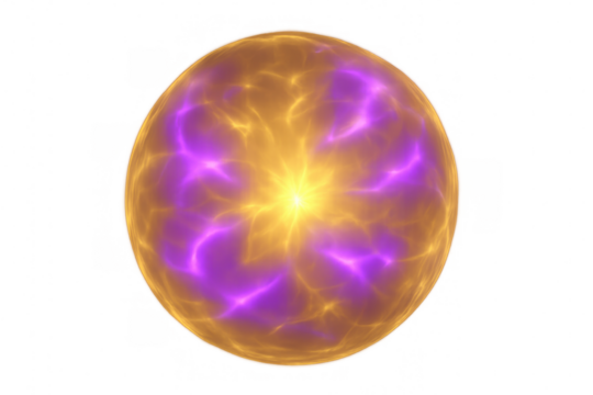 Golden plasma ball emitting purple electric energy, perfect for fantasy and science fiction projects