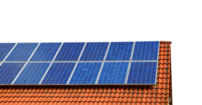Roof top Solar panels, Photovoltaic isolated on transparent background - PNG format.
