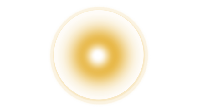 Bright Golden Yellow Glowing Light Orb with Soft Radial Blur on White Background, Warm Solar Abstract Lens Flare Element
