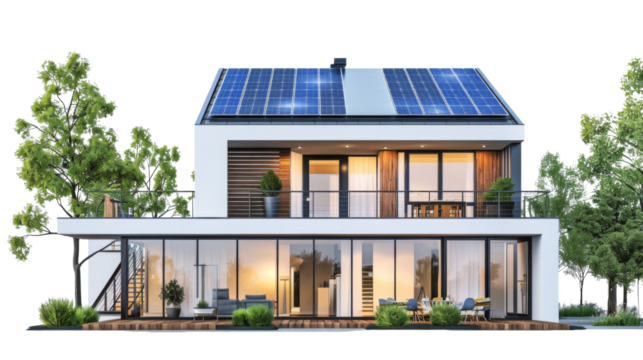 Modern house with solar panels on a transparent background