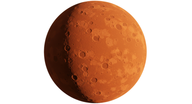 Detailed planet Mars surface, cratered landscape, solar system, cut out transparent
