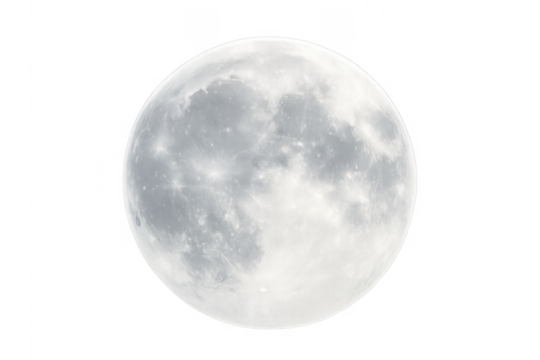 Full moon glowing in dark space on transparent background