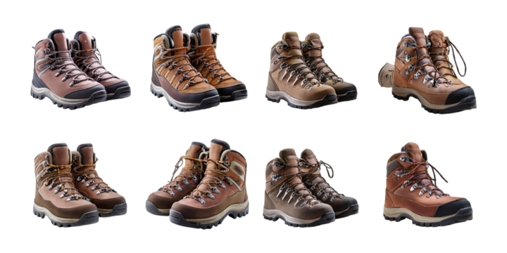 Collection of Hiking Boots for Outdoor Adventures, PNG collection, set bundle, isolate on transparent or white background