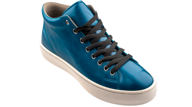 Vibrant Blue Leather High-Top Sneaker with Black Laces, cut out transparent