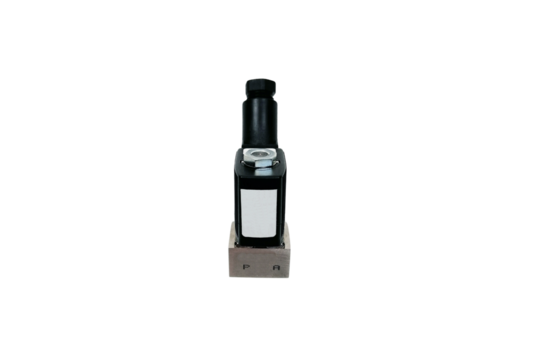 A photos of black and silver solenoid valve for mock up, png format, transparent background.