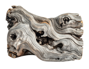Close-up of weathered driftwood on a solid black backdrop, showing intricate textures