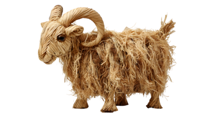A traditional Scandinavian solstice goat made of straw, isolated on Transparent Background