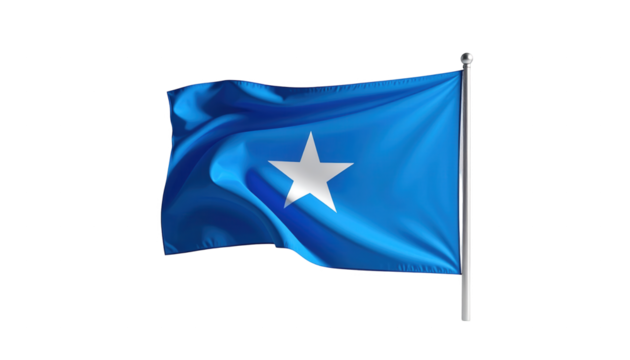 A vibrant depiction of the Somali flag, showcasing the national colors and the prominent white star on a deep blue field.