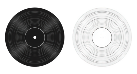 Black vinyl record and white vinyl record isolated on transparent background
