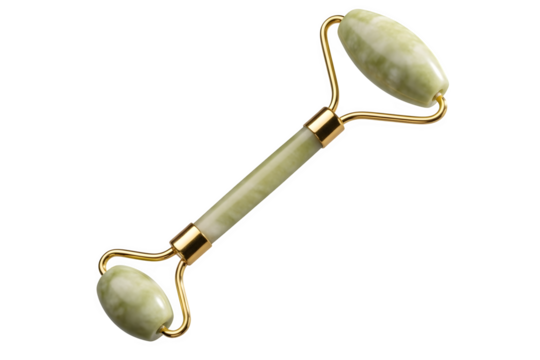 Wooden handheld massage roller tool with two rotating balls for spa on a transparent background