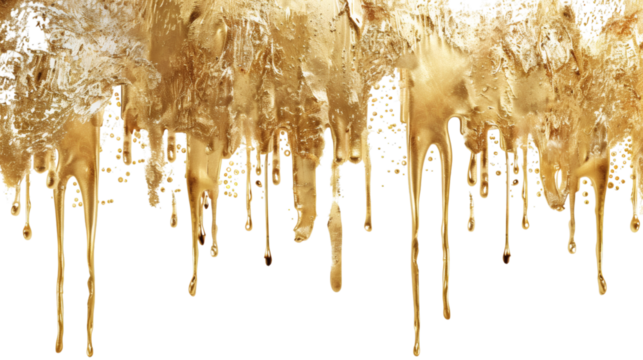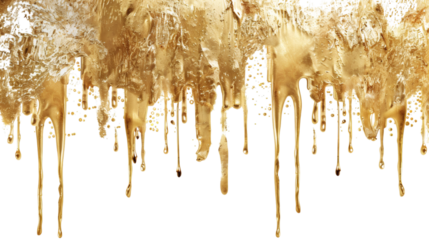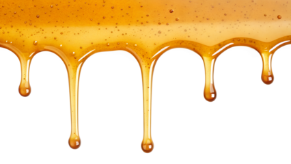 Golden honey dripping in thick strands from a viscous liquid isolated on transparent background