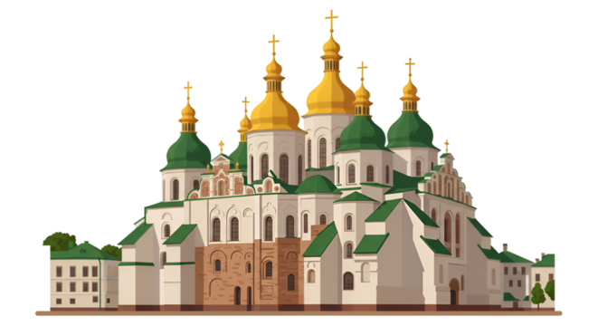 Illustration of Saint Sophia Cathedral with Gold Domes on Transparent