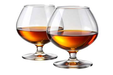 Stylized transparent cocktail glasses with skewer and strawberry