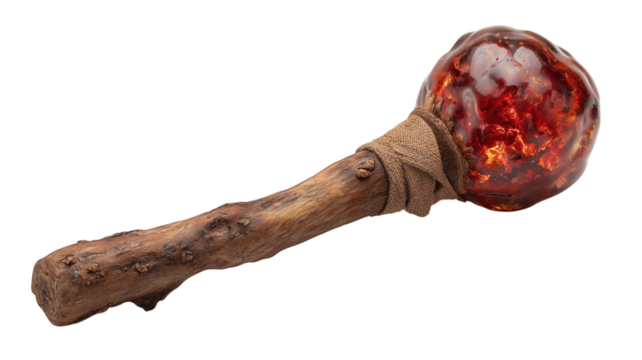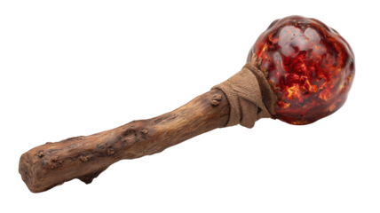 Ancient wooden magic wand with glowing red orb for fantasy gaming and mystical storytelling concepts.
