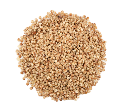top view flat lay pile of coarse grind red sorghum grain cutout