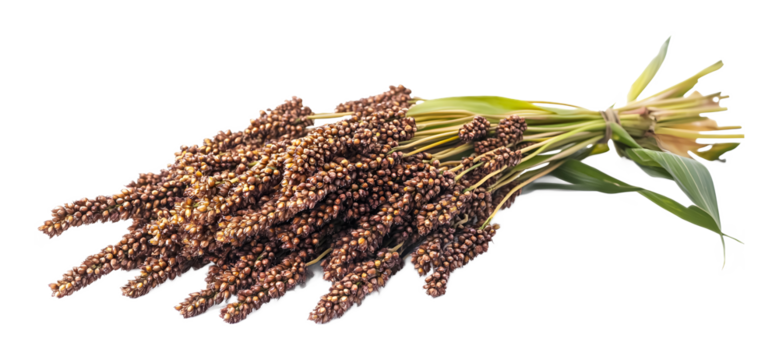 Sorghum grain, flour, and bread isolated on transparent background, a glutenfree option
