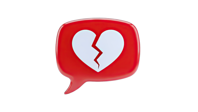 3D Broken Heart Chat Bubble Icon on transparent background