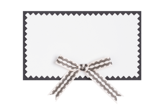 Note Card with Decorative Ribbon Bow Isolated on White and Png Trasparent Background