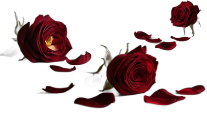 Red dried rose on a PNG background with scattered petals