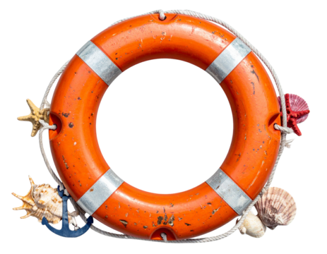 Classic Red and White Lifebuoy, Front View, Transparent Background