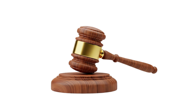 Wooden Gavel and Sound Block Symbolizing Justice and Law on Transparent Background for Legal Concepts
