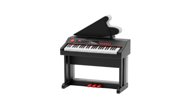 Black Grand Piano Style Electronic Keyboard with Pedals
