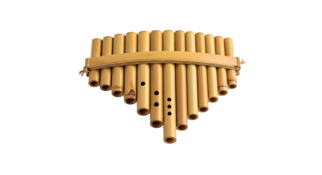 Traditional panpipe isolated on transparent background, a wind instrument made of bamboo tubes, used in folk music to create melodic and harmonious sounds
