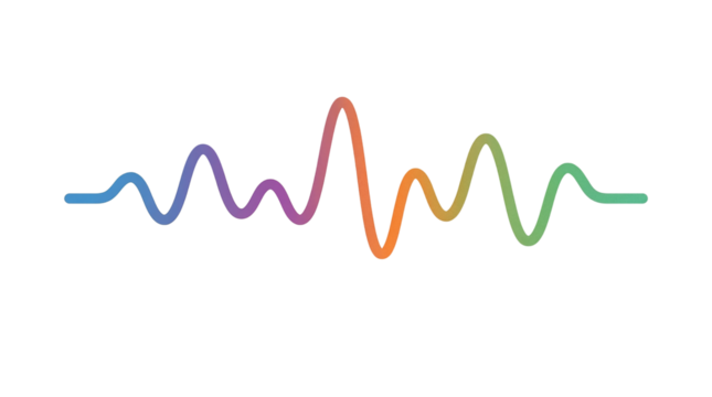 Colorful abstract trumpets emitting vivid sound waves on transparent background