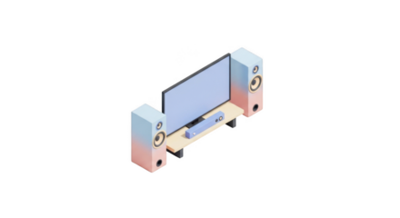 Modern wooden tv stand with storage compartments and sleek soundbar on top, perfect for home entertainment systems on transparent background. on transparent background