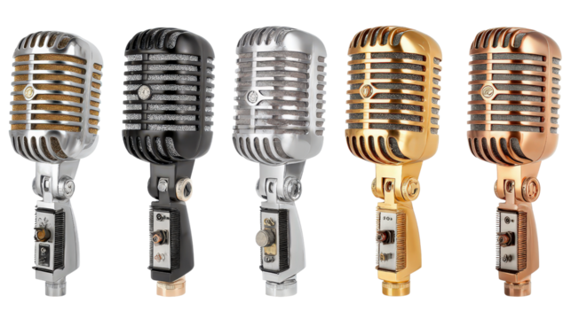 Collection of retro microphones Transparent background, PNG file