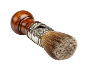Traditional wet shaving with brush and razor home bathroom cozy environment isolated on transparent background, png