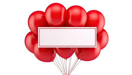 Red balloons clustered around a blank banner