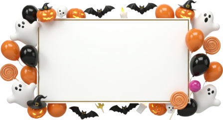 Spooky Halloween Party Invitation Card Design with Pumpkins Bats Ghosts Balloons and Lollipops