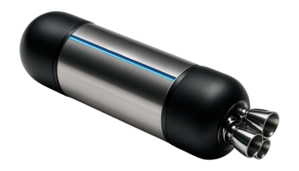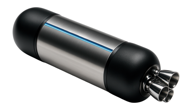 Cylindrical propulsion unit with visible fuel tanks and engine nozzles