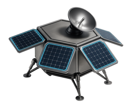 Detailed space satellite with solar panels futuristic aerospace technology orbital communication science exploration realistic render isolated on white background
