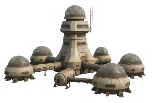 Futuristic space colony research outpost on transparent background