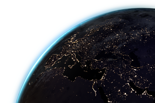 Moon surface isolated on transparent background. Lunar landscape with deserted landscape and craters formed by meteor impacts