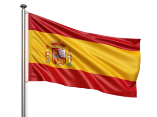 Spanish Flag Waving proudly on a flagpole Spain national symbol patriotism red yellow coat of arms, isolated on a transparent background