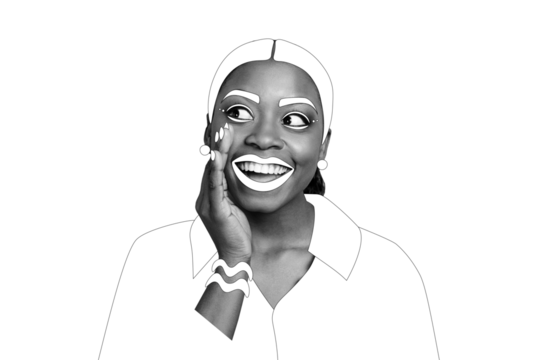 Composite photo collage of american funny smile woman hand whisper murmur talk gossips lie white effect isolated on painted background