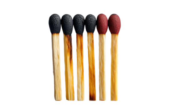 Close-up of a single wooden match, isolated on white background